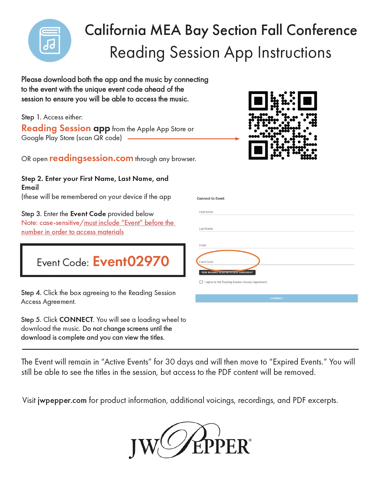 All choral reading session music will be in a digital packet on JW Pepper’s ePrint platform. NO Books are provided. Attendees are strongly encouraged to bring an iPad, tablet, or other device to use to log into the JW Pepper app and read from during the reading session.